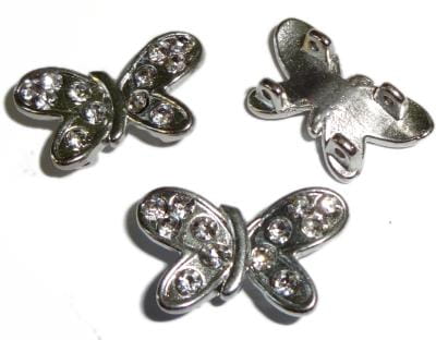Ozdobna przekładka do bransoletek sznurkowych w kształcie motyla, wysadzana cyrkoniami w kolorze crystal. Od spodniej strony przekładka ma 4 uszka.