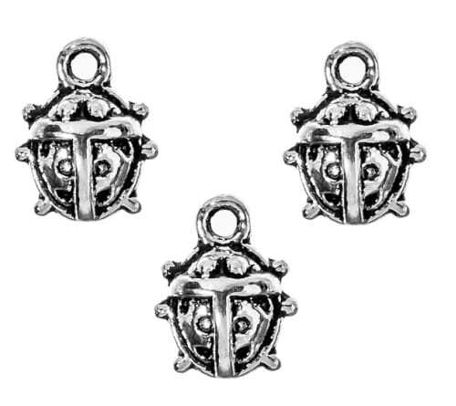 Zawieszki charms ozdobne biedronki, wykonany z metalu w kolorze antycznego srebra.