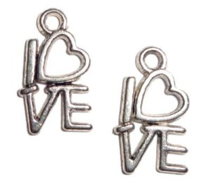 Zawieszki charms - Love z serduszkiem, wykonane ze srebra tybetańskiego.