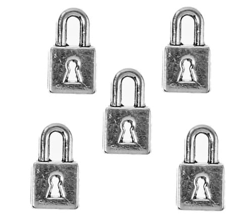 Zawieszki charms malutkie kłódki, wykonane z metalu w kolorze antycznego srebra.
