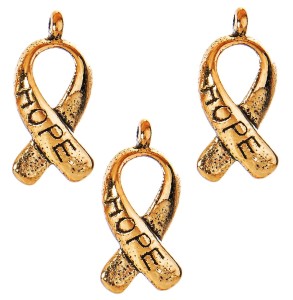 Zawieszki charms wstążki z napisem HOPE (nadzieja) wykonane z metalu w kolorze antycznym złotym.