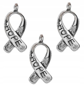 Zawieszki charms wstążki z napisem HOPE (nadzieja) wykonane z metalu w kolorze antycznym srebrnym.